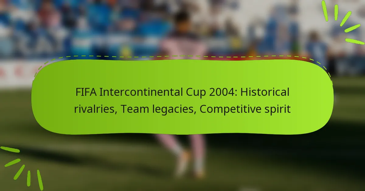 The 2004 FIFA Intercontinental Cup highlighted intense historical rivalries between clubs from Europe and South America, particularly featuring the match-up between FC Porto and the Colombian club Once Caldas. These rivalries not only underscored the competitive spirit of the tournament but also showcased the legacies of the teams involved, drawing passionate fan engagement and creating memorable moments in football history.